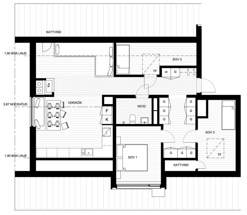 En välbalanserad och funktionell fjällägenhet med samma genomtänkta planlösning som 1002.